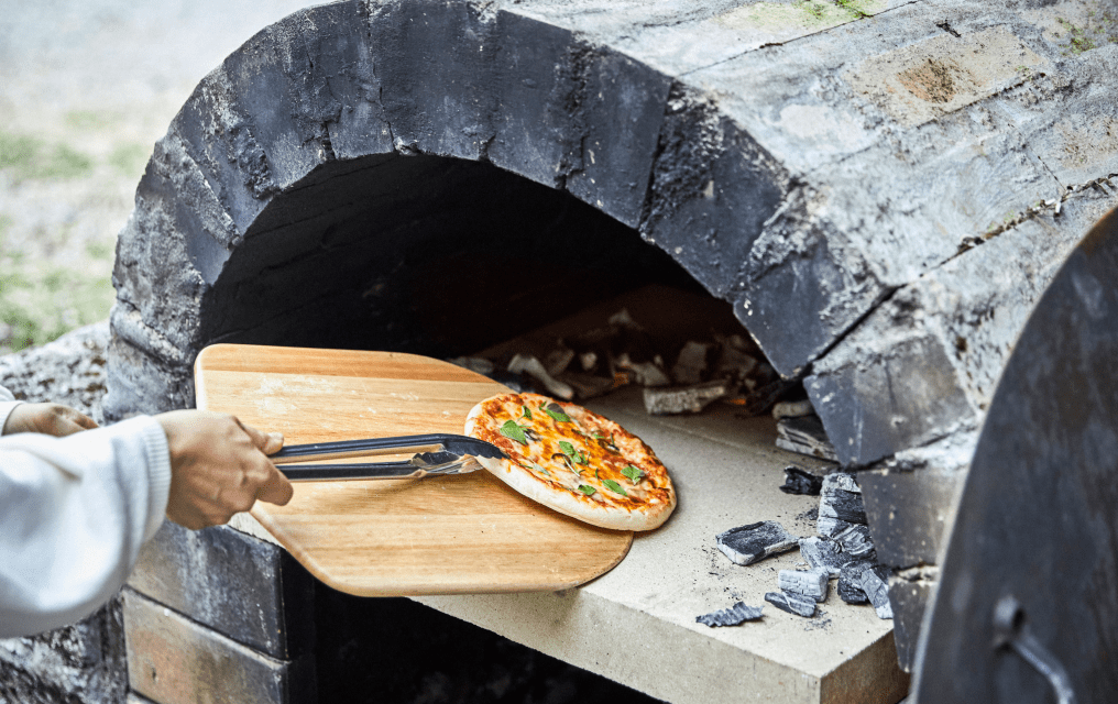 山菜ハーブで窯焼きピザ